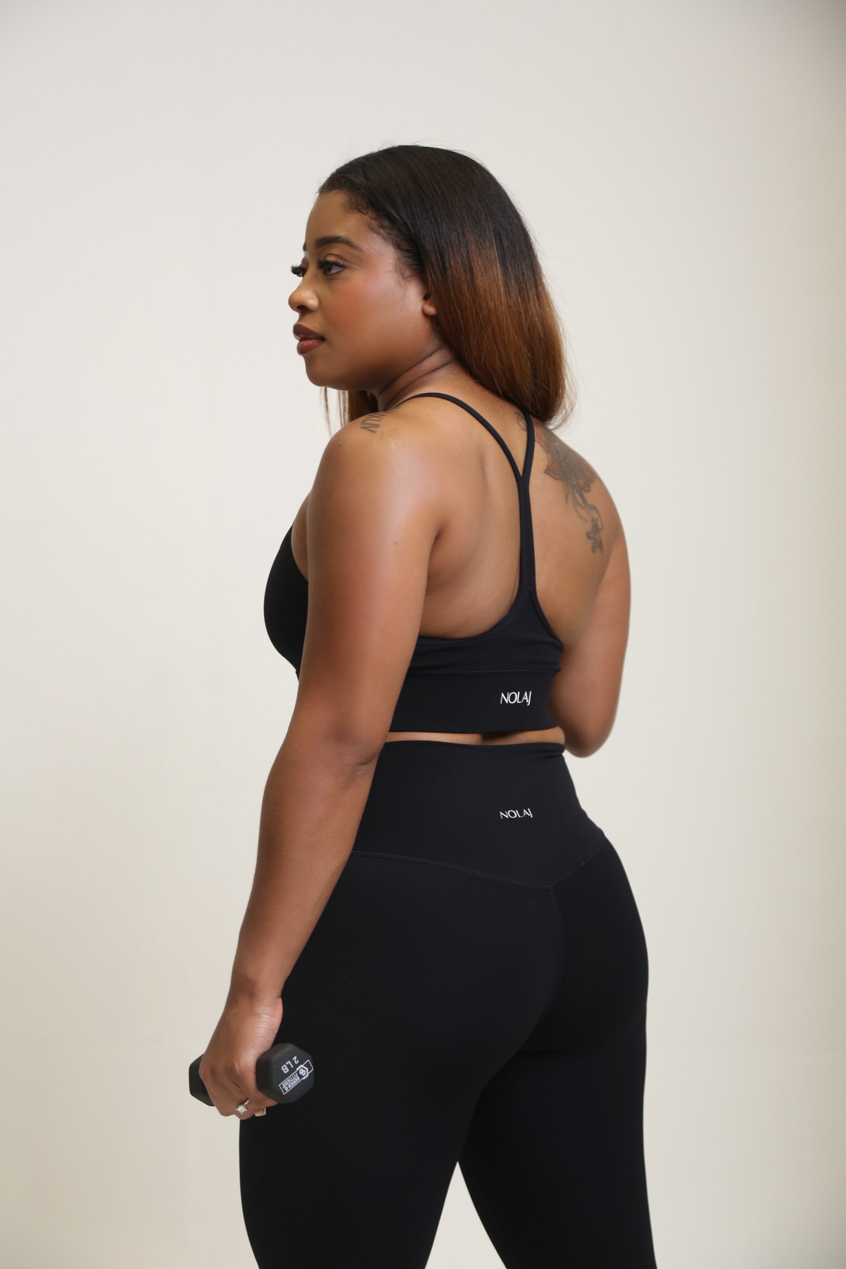 In our NULS skin buttery fabric, thick band for support, sweat wicking, quick drying, breathable and removable pads.